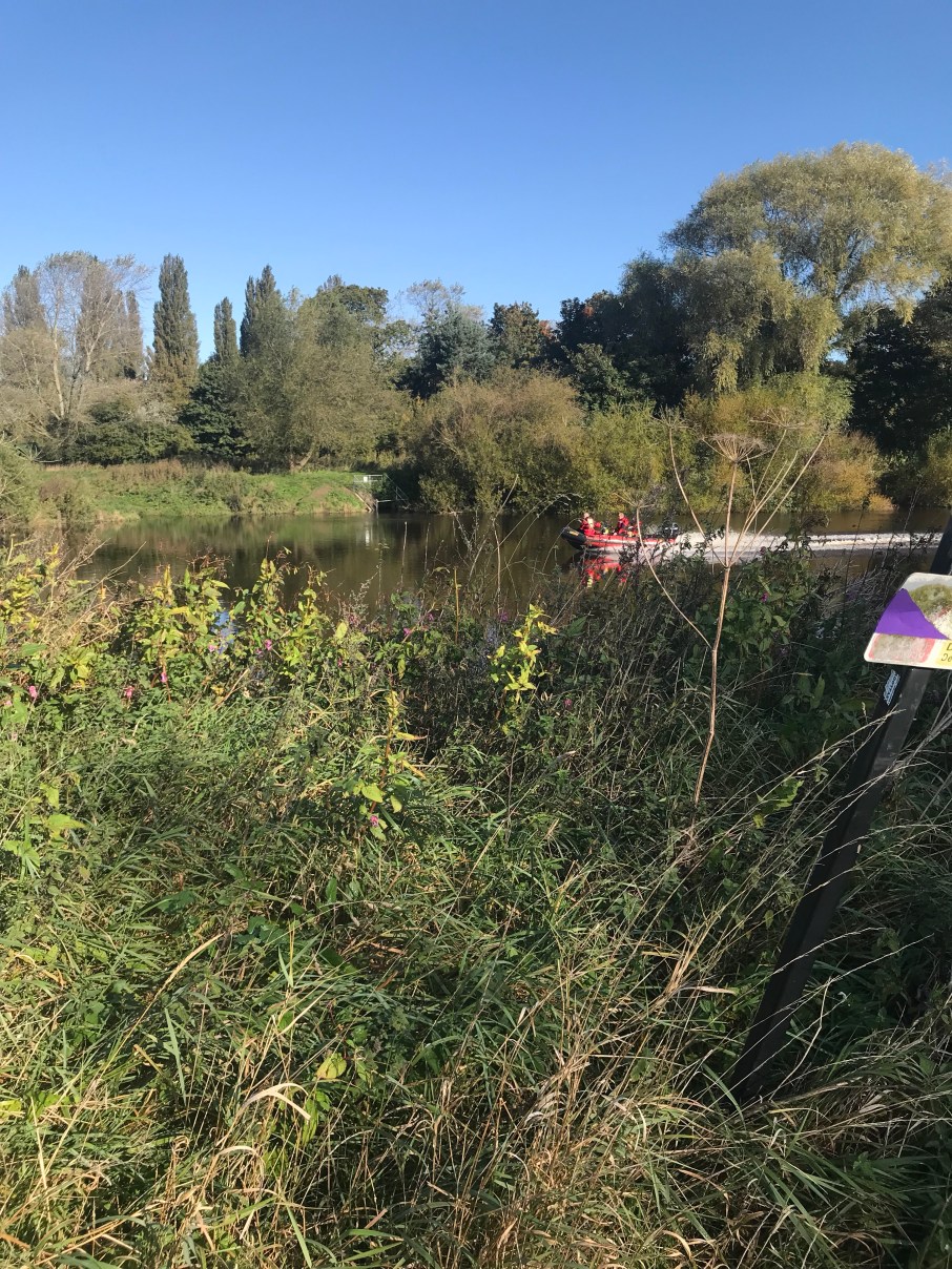 The river was fairly high today, but calm.